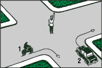16. Ένας τροχονόμος ρυθμίζει την κυκλοφορία σε μία διασταύρωση, αν και ο φωτεινός σηματοδότης λειτουργεί. Συμμορφώνεστε με: