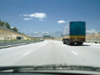 1. Καθώς το φορτηγό εισέρχεται στο κύριο ρεύμα κυκλοφορίας από λωρίδα επιταχύνσεως, τι μπορεί να κάνει ο οδηγός ενός επιβατηγού αυτοκινήτου που κινείται στη δεξιά λωρίδα, για να συμβάλει στην ασφάλεια της κυκλοφορίας: