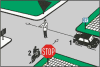 13. Ποιο όχημα και γιατί πρέπει να περιμένει να περάσει το άλλο: