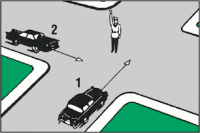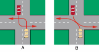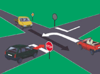 1. Όταν στρίβετε αριστερά σε ένα σταυροδρόμι όπου αντίθετα εισερχόμενα αυτοκίνητα επίσης στρίβουν αριστερά, ο σωστός και ασφαλής τρόπος διελεύσεως είναι αυτός που φαίνεται: