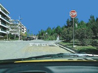 13. Σε ποια από τις τρεις σημειούμενες τροχιές, εάν κινηθεί το όχημά σας, θα παρεμποδίσει την κυκλοφορία:
