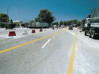 1. Όταν σε περιοχές έργων στον αυτοκινητόδρομο, η οριζόντια σήμανση συμπεριλαμβάνει άσπρες και κίτρινες γραμμές ταυτόχρονα,σέβεστε: